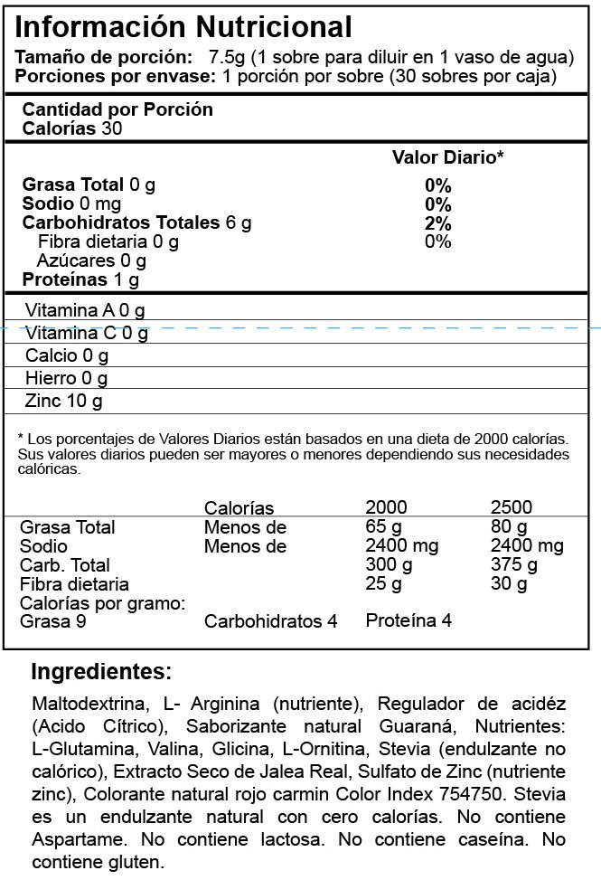 Fusión Nutracéutica: Aminoácidos (L-Arginina) + Jalea Real + Zinc en molécula orgánica